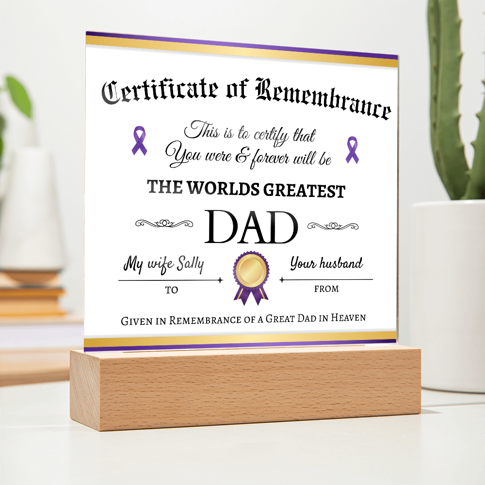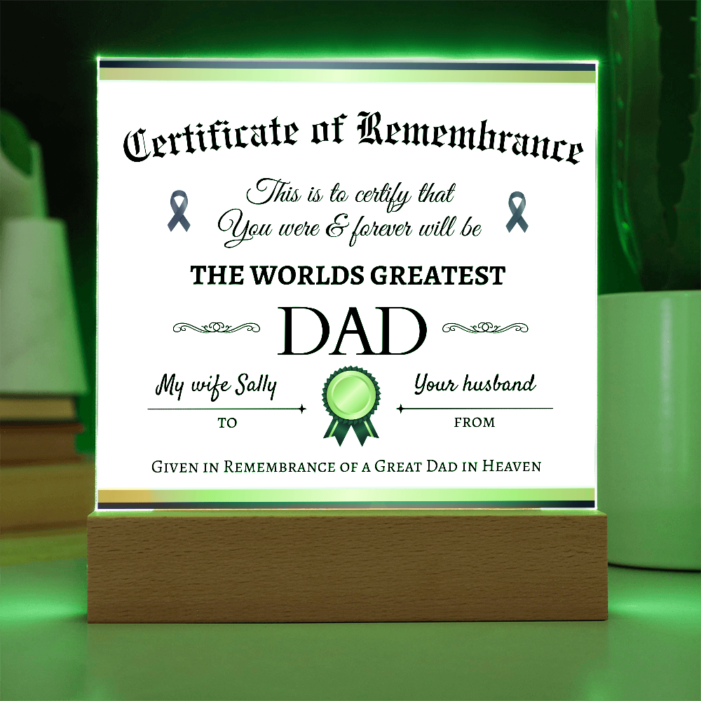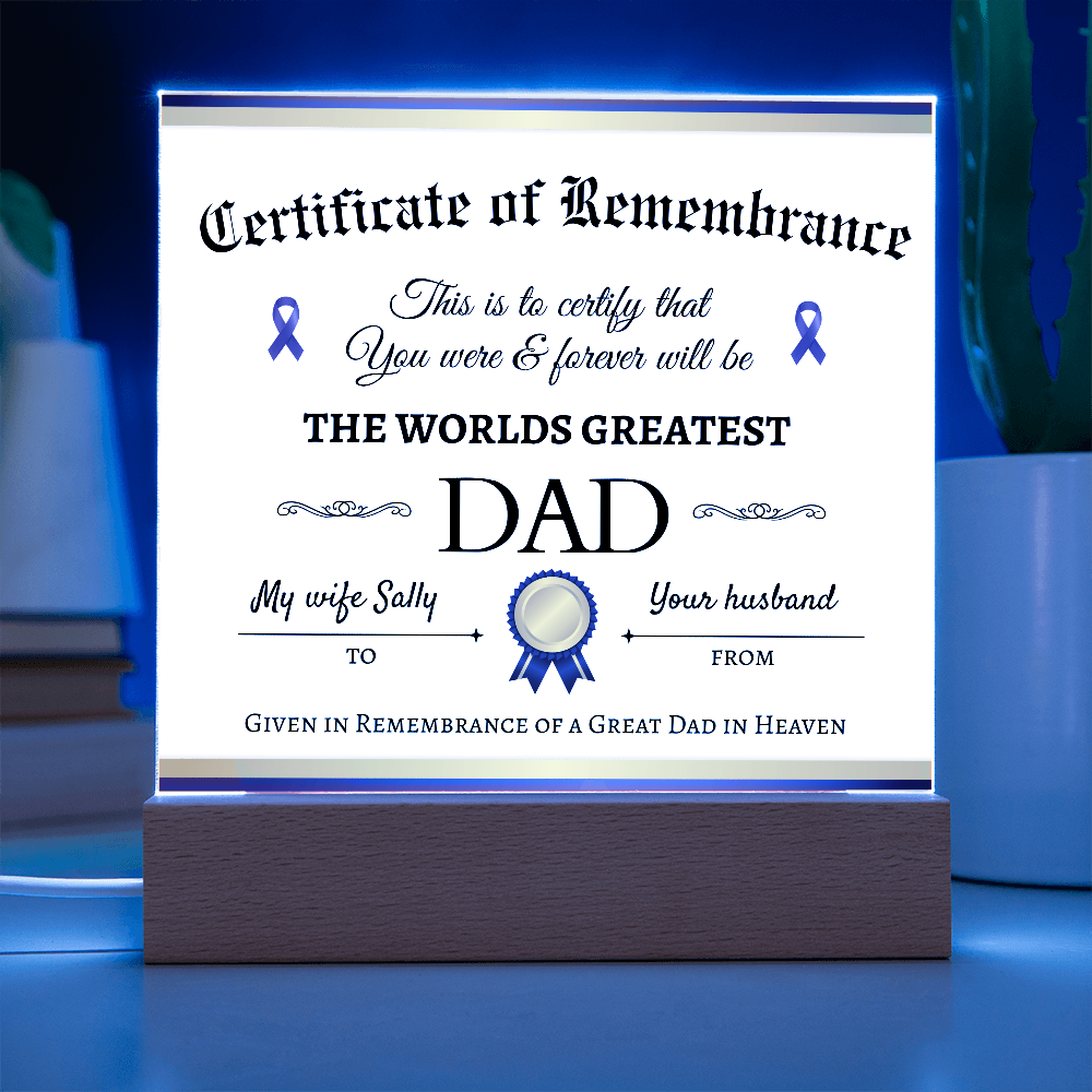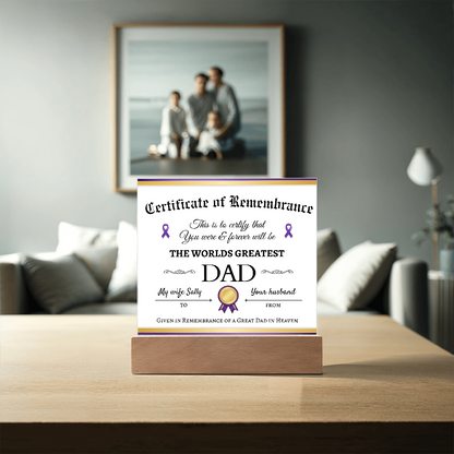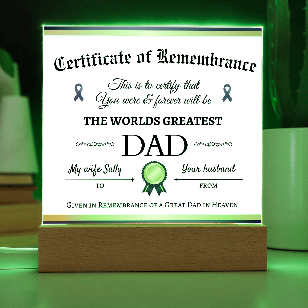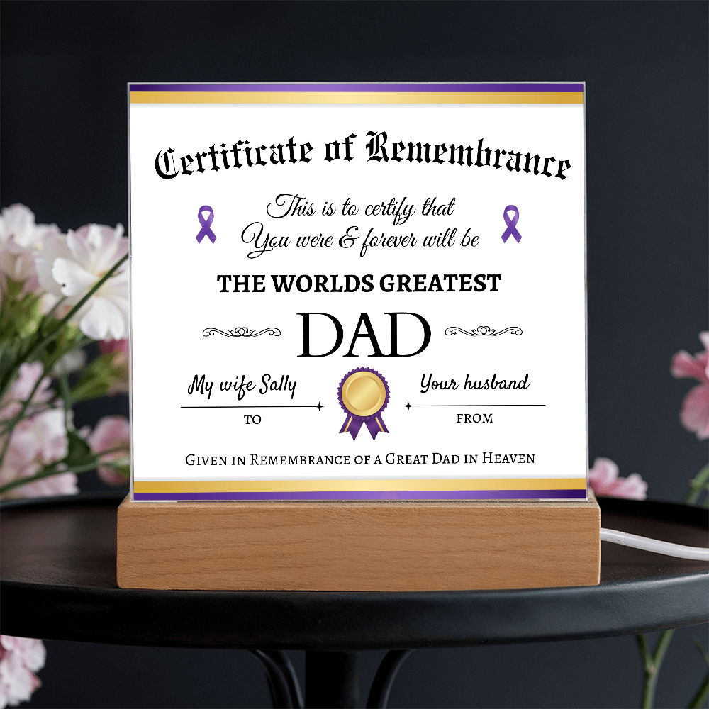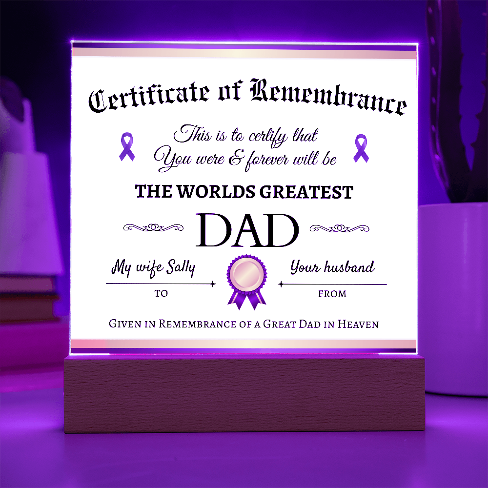 Your plaque will be crafted from premium acrylic with a professionally printed design for a polished look. It comes with a stylish wooden LED base, and you can choose between a USB plug-in option OR a cordless battery-operated option (requires 2 AAA batteries, not included). Both LED bases feature 7 vibrant colors, allowing the user to customize the lighting with various color changes and dynamic cycles.