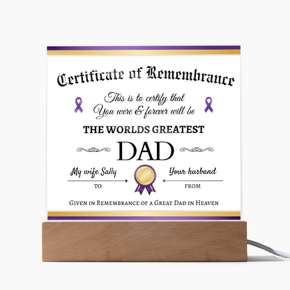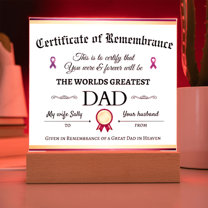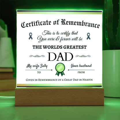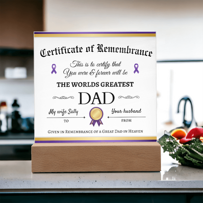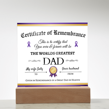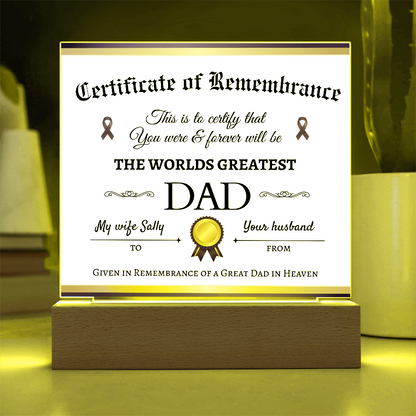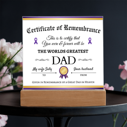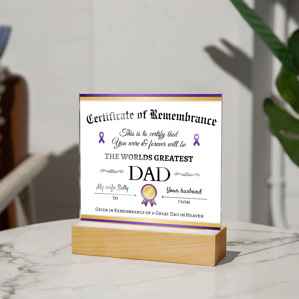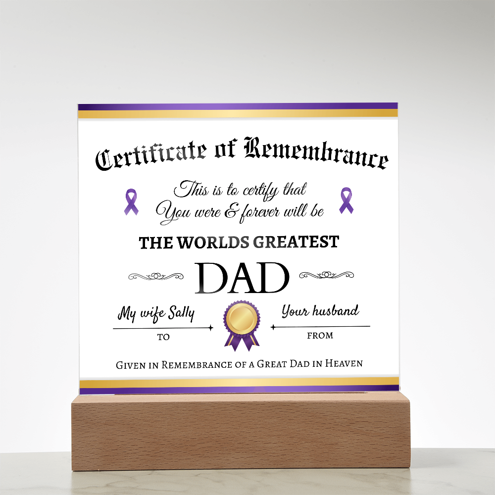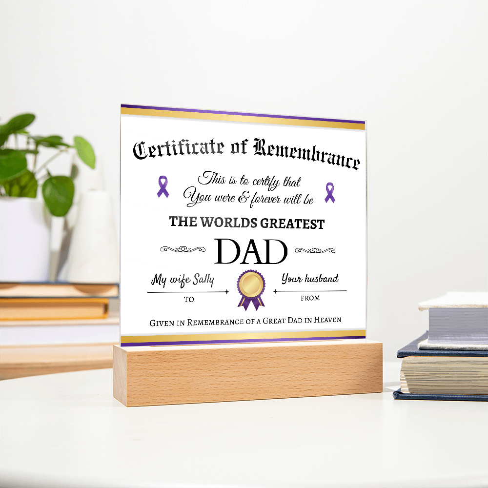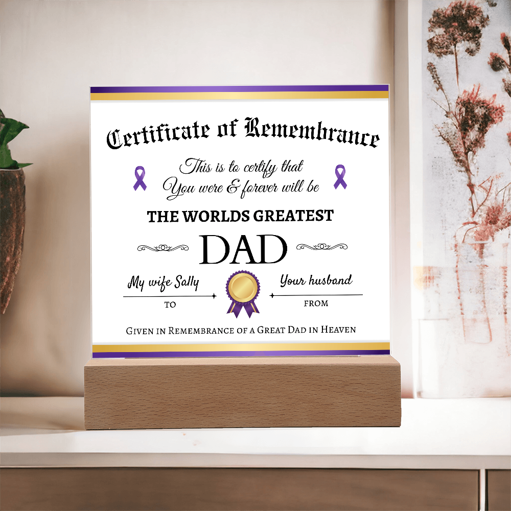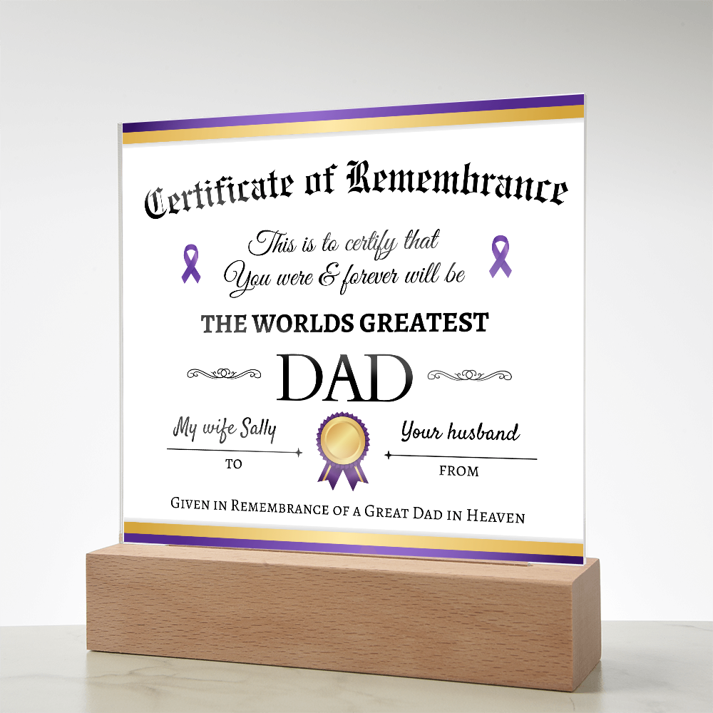 Your plaque will be crafted from premium acrylic with a professionally printed design for a polished look. It comes with a stylish wooden LED base, and you can choose between a USB plug-in option OR a cordless battery-operated option (requires 2 AAA batteries, not included). Both LED bases feature 7 vibrant colors, allowing the user to customize the lighting with various color changes and dynamic cycles.