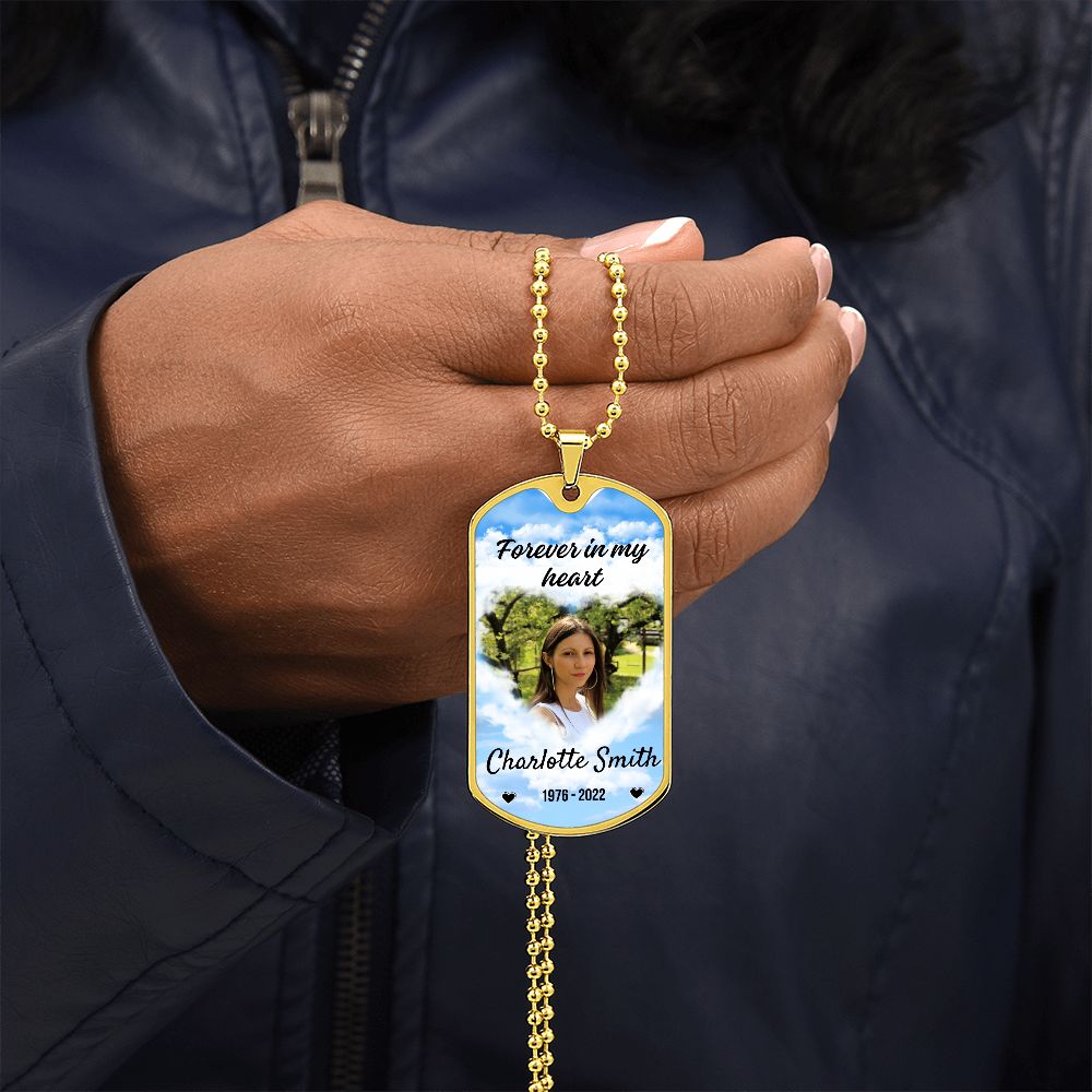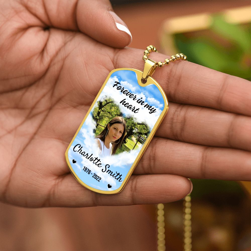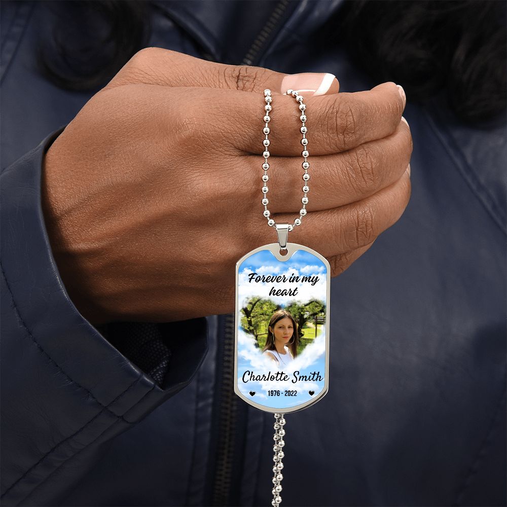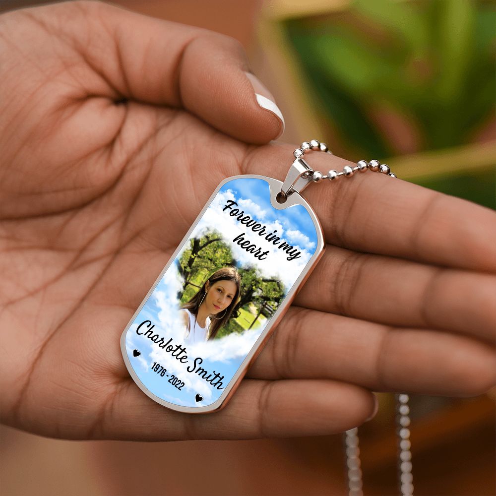 In My Heart Sky-Blue Memorial Dog-tag Necklace