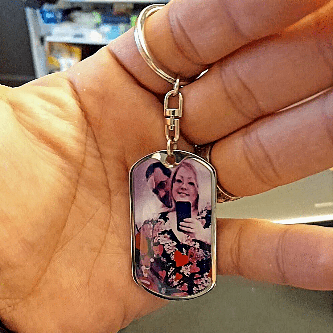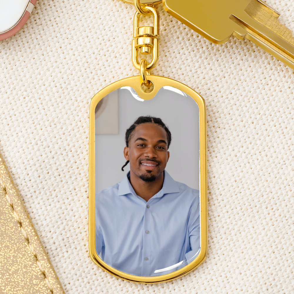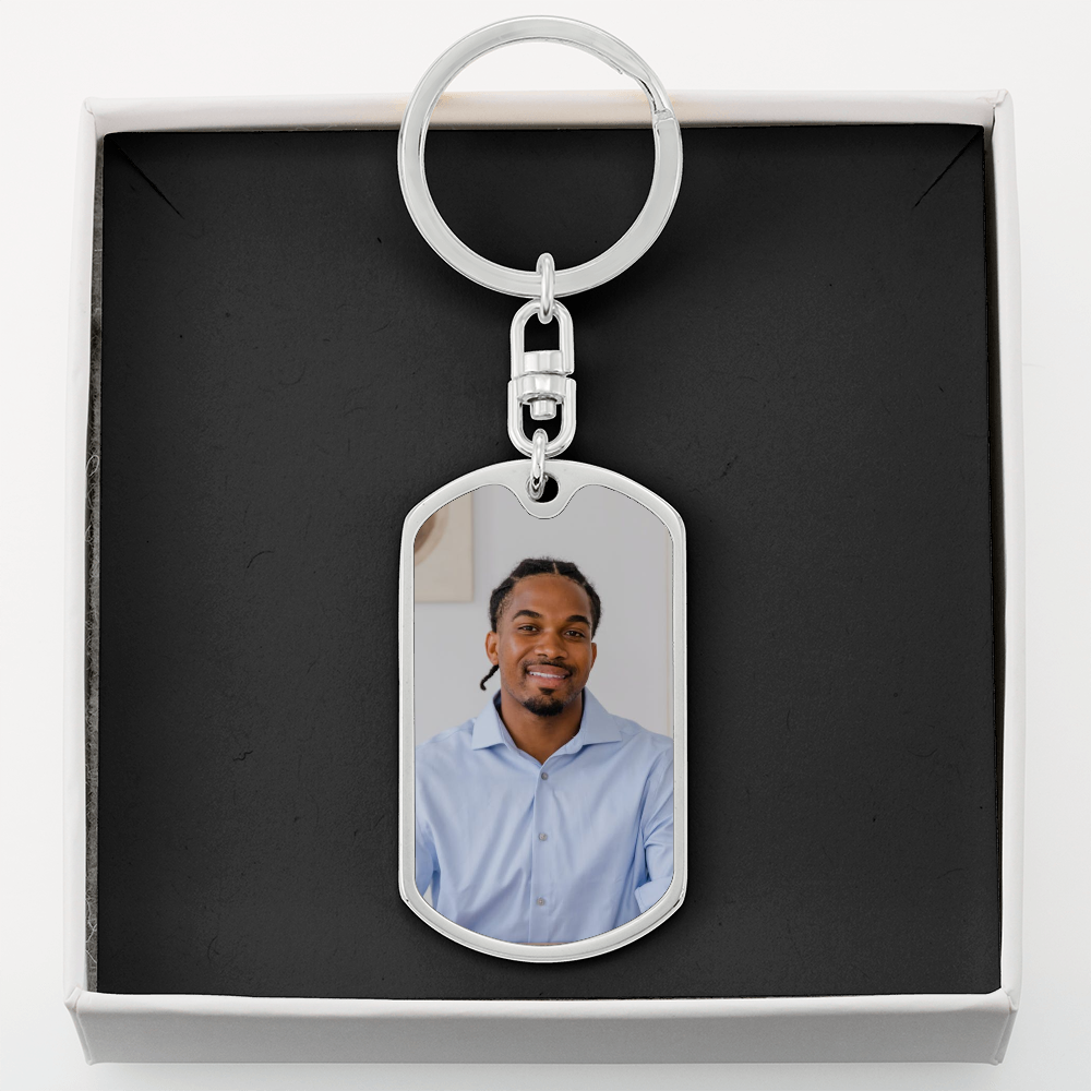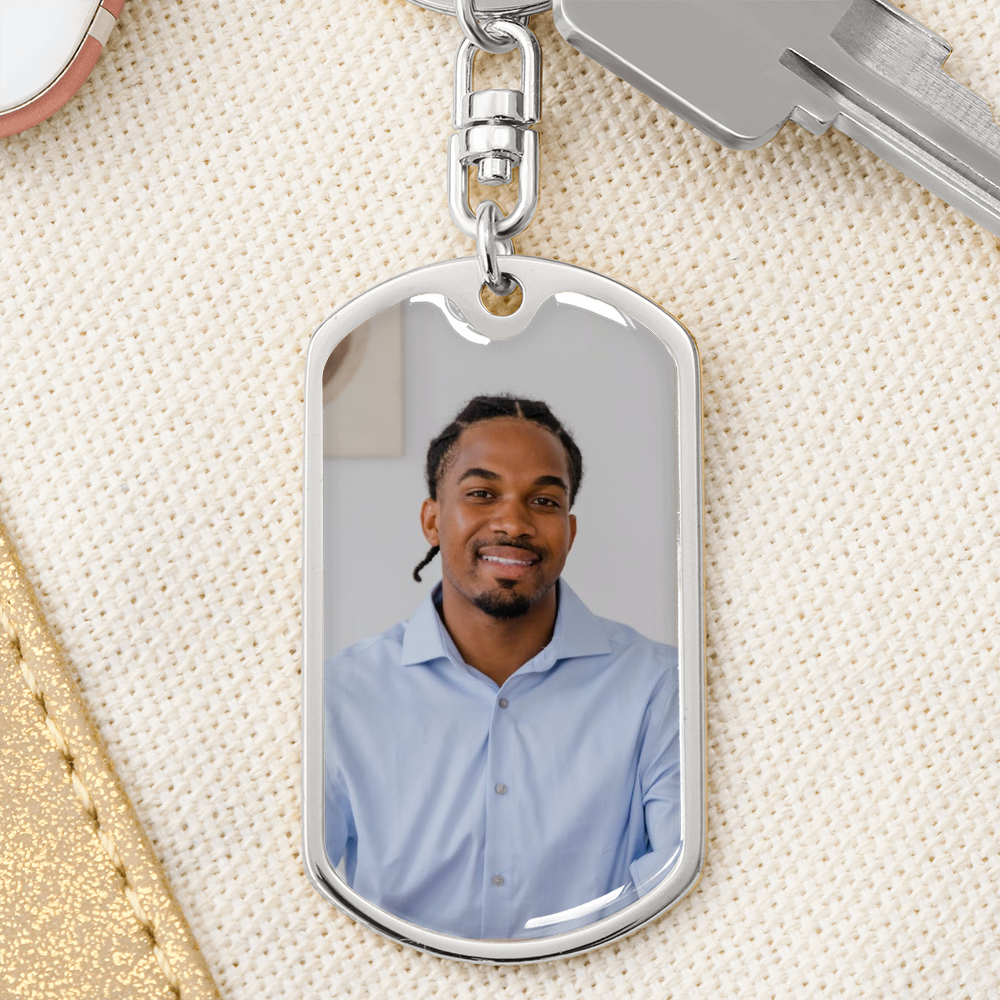 Men's Dog-Tag Memorial Photo Keychain