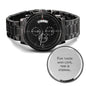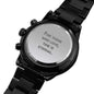 This “Black Chronograph Memorial Gift Watch” is the perfect gift for all the special men in your life to remember a loved one. Customize the back with the Name and Dates to remember or honor the memory of a loved one.